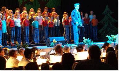 Blasorchester und Kinder-/Jugendchor gestalteten gemeinsam Musical